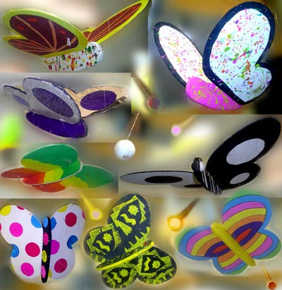 Se’n coneixen de moment unes 20.000 espècies, però encara en queden moltes més per descobrir, com aquestes que tenim a l’IES Castellbisbal: vuit papallones fetes amb fusta, pintures, paper de diari, cola, etc. Aquestes són grans i amb uns colors esplendits i llampants. Nosaltres, els alumnes de l’Aula Oberta, n’hem imitat el vol en aquesta peça “mòbil-papallona”.