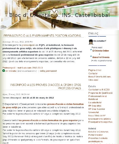 Personalment, trobo molt útil aquest apartat de la intranet. Estem en una etapa de la nostra vida bastant important, ja que hem de triar els nostres estudis i, això, es molt possible que condicioni tot el nostre futur. Per aquest motiu, crec necessari pensar molt bé el que triarem.