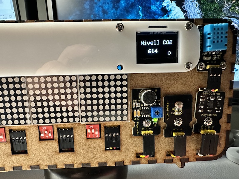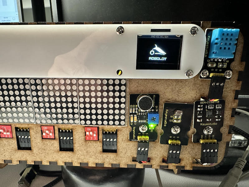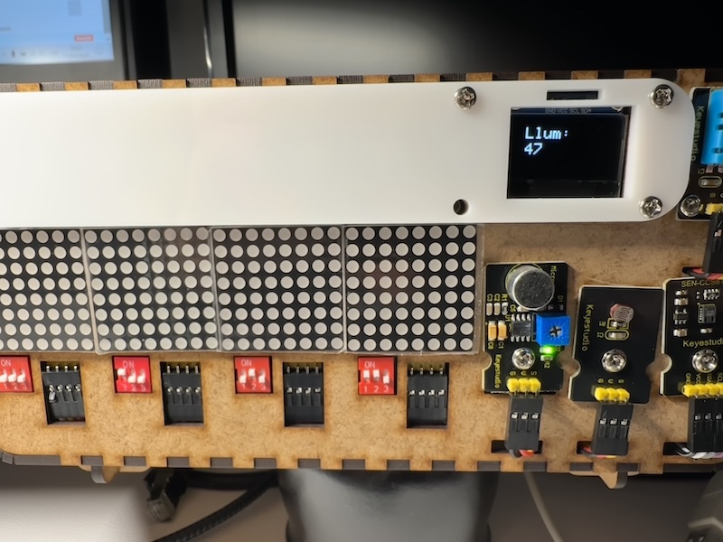 Aquest cop hem aprés a programar els diferents components de l’estació de qualitat de l’aire. Ara ja podem mesurar, el CO2, la lluminositat, la temperatura, la humitat, la pressió atmosfèrica, fer sortir informació pels panells matrius de leds i el panell OLED. També hem pogut guardar les dades en una tarja SD.
