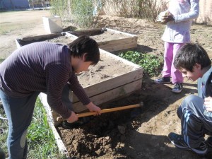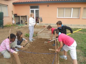 Mentre removíem la terra per plantar les faves ens anàvem trobant patates que segurament havien plantat els que ara fan 5é. Dintre o el costat de la patata anàvem trobant erugues que tenien el cap taronja i el cos blanc.