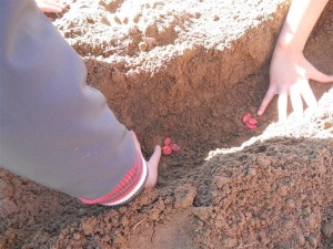 - Plantar les faves per flotes, de tres faves, a un pam de distància.