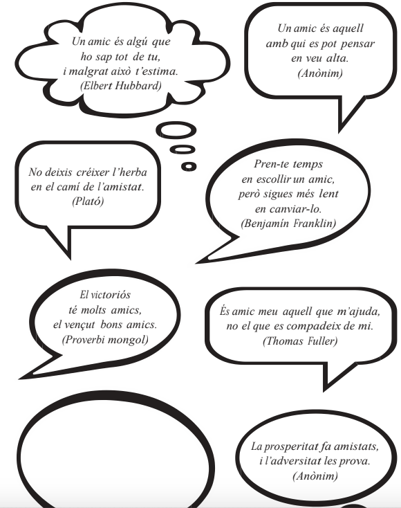 - Què creus que vol dir aquest autor quan afirma que l’amistat és…?