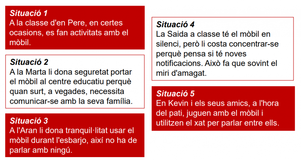 1. Creieu que és necessari portar el mòbil al centre educatiu? (5 minuts)