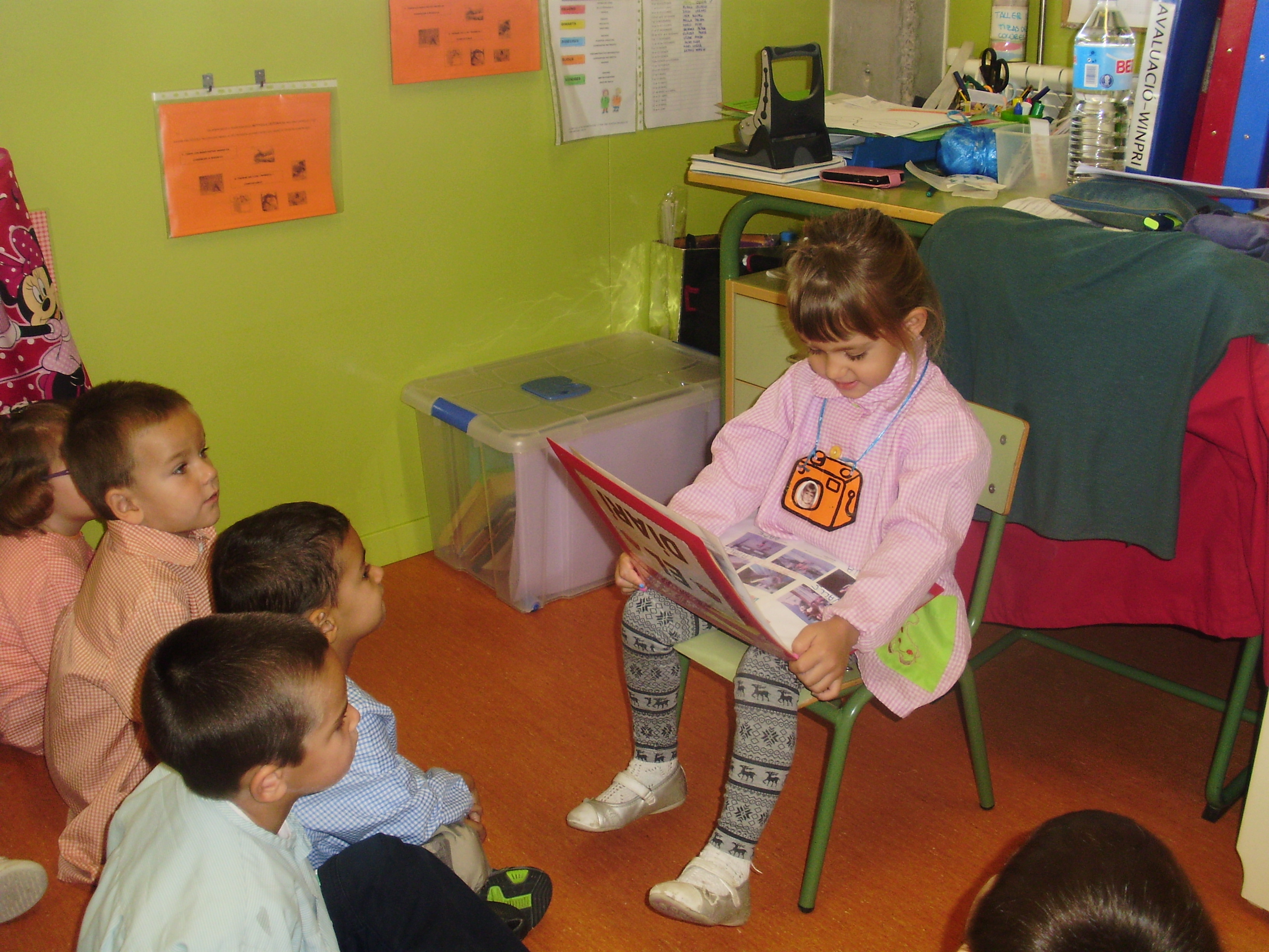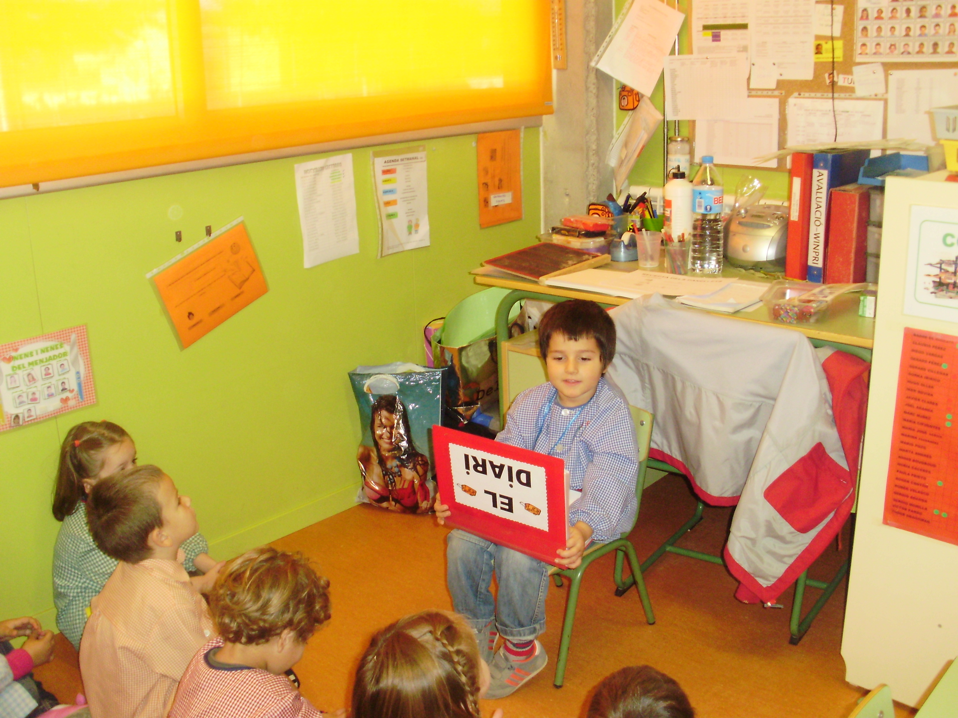 Al matí els tallers, amb ajut de les mestres i algunes mares voluntàries. A la tarda desfilada de disfresses a la classe, amb una pasarel.la que vam muntar.