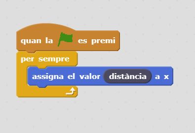 Fer que el gos es vagi moment en funció de la distància de la nostra mà al sensor de distància.