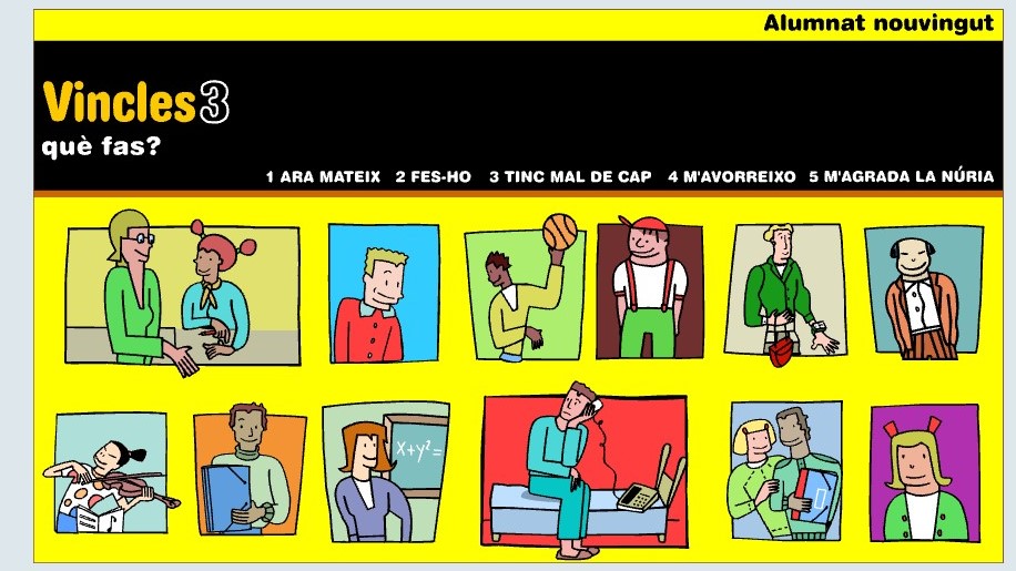 23 làmines que presenten diàlegs sobre activitats quotidianes i guia didàctica per facilitar-ne la utilització. Guia didàctica per a la utilització de les làmines “Vivim junts. Activitats quotidianes”