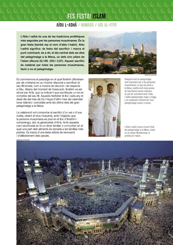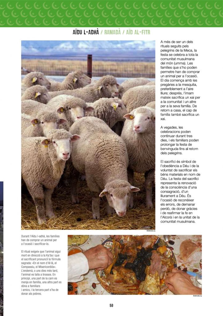 La festa del Aïd al-Adha  és la festa més gran dels musulmans, i es coneix també com “La festa del sacrifici”. El següent document de la DGAR (Direcció General d’Afers Religiosos) de la Generalitat de Catalunya explica quin és l’origen d’aquesta celebració i en què consisteix: