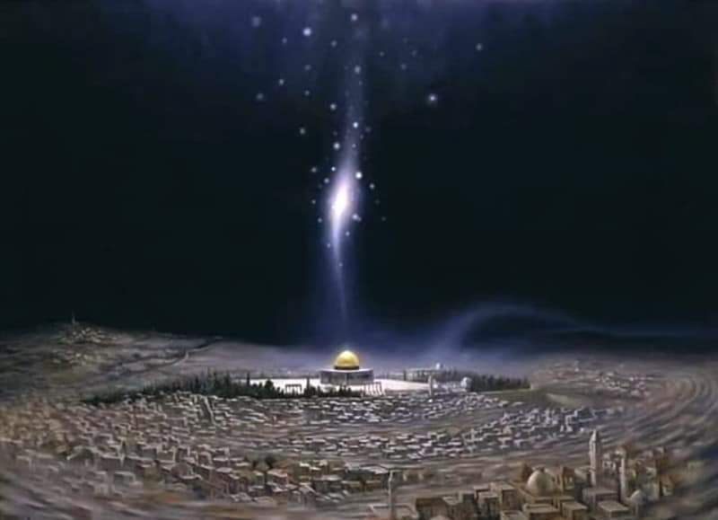 Allà, des de l’antic temple de Salomó (Sulayman) i actual Mesquita de la Roca va dirigir la oració amb els profetes anteriors.