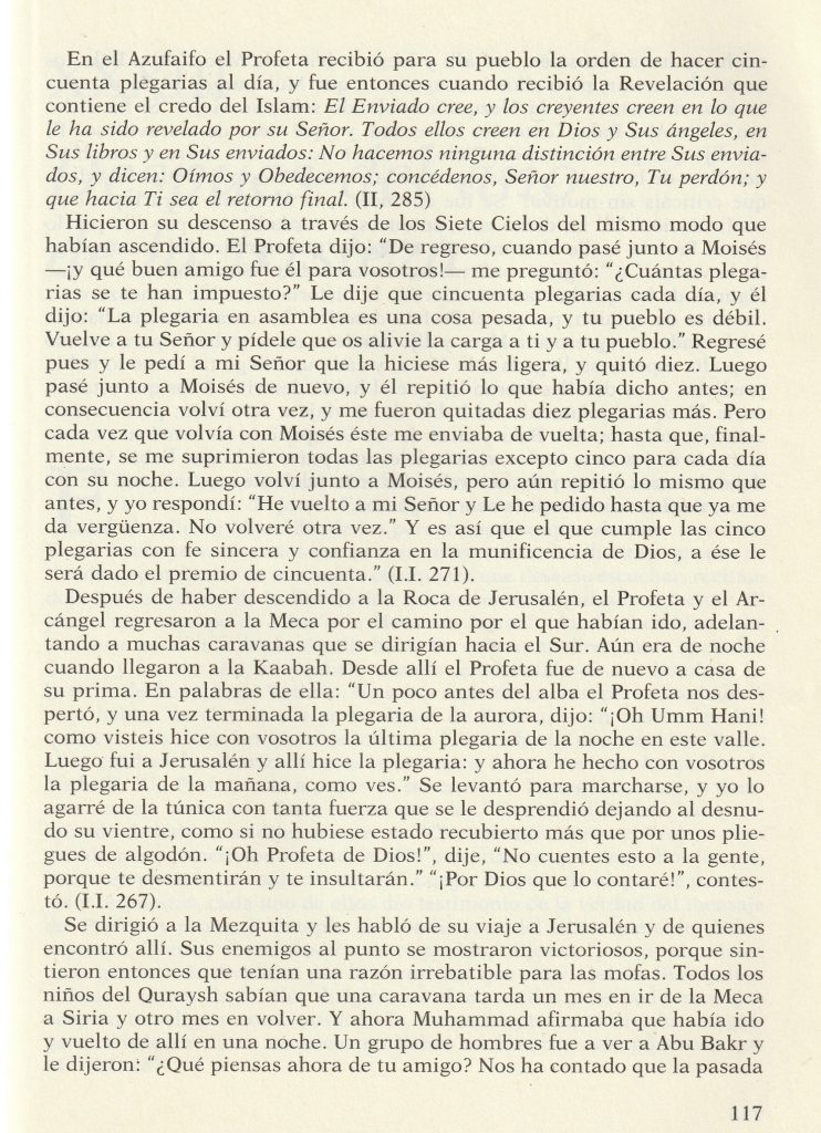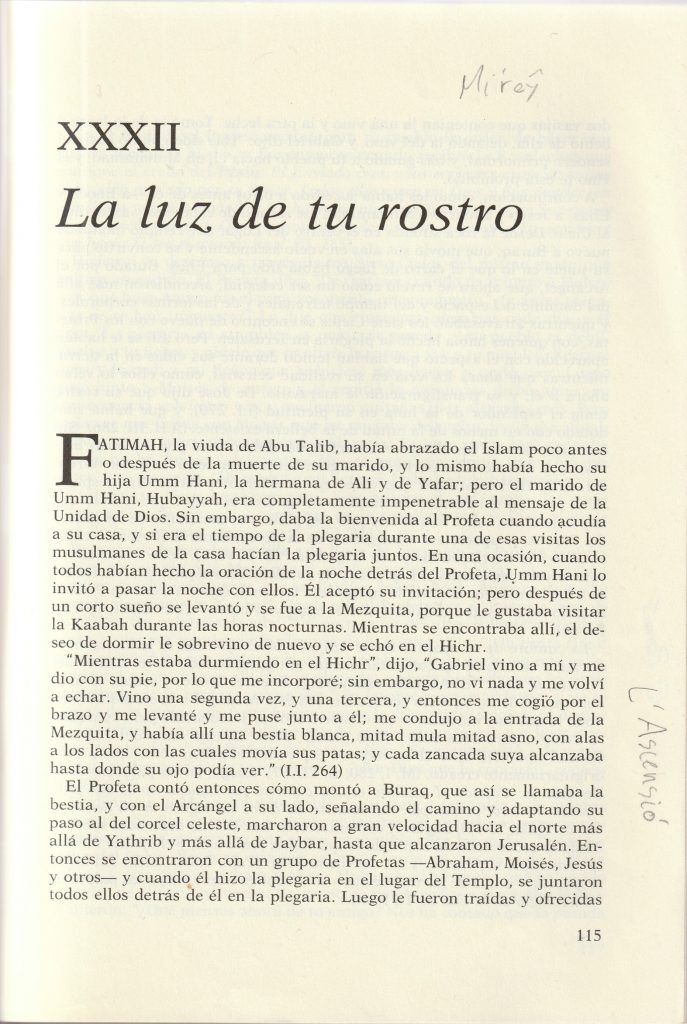 Després va començar un viatge vertical (l’ascenció) passant pels 7 cels subtils fins arribar al tro diví i a la màxima proximitat.