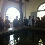 Cada grup va anar a visitar les diferents parts de la colònia, com per exemple: el pis, la peixateria, el safareig, els horts, la caixa, les dutxes, l’escola i la casal de la dona, la fàbrica, la turbina d’aigua, la màquina de vapor i per finalitzar el guia va fer sonar la sirena que feien servir per acabar el torn de treball.