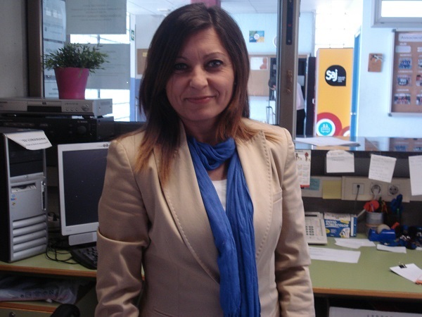 arribem a l’institut ens la trobem amb un somriure. Ens tracta molt bé i ens dóna tot el que nosaltres demanem: fulls en blanc, guixos, claus dels lavabos i ella és qui passa la llista a primera hora del matí.