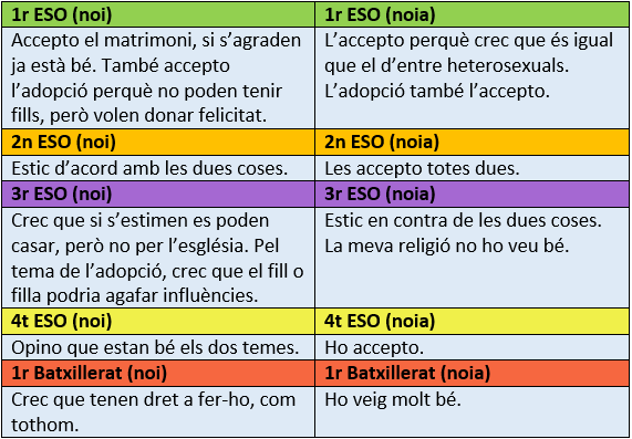 d) Què penses sobre el matrimoni entre parelles no heterosexuals? I sobre l’adopció?