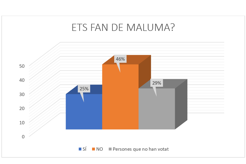 El cantant Maluma és un compositor colombià que està sent molt criticat per la lletra i la cançó del seu tema “Cuatro Babys”. Nosaltres hem passat una enquesta a diferents cursos per preguntar-los la seva opinió. I els resultats que vam obtenir van ser els següents:
