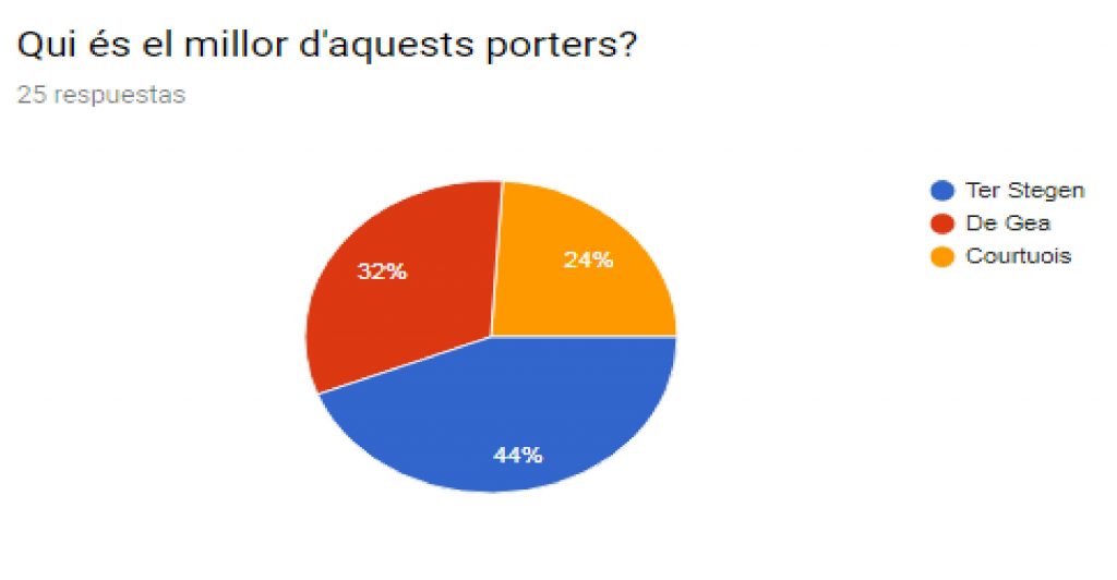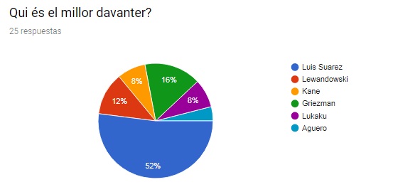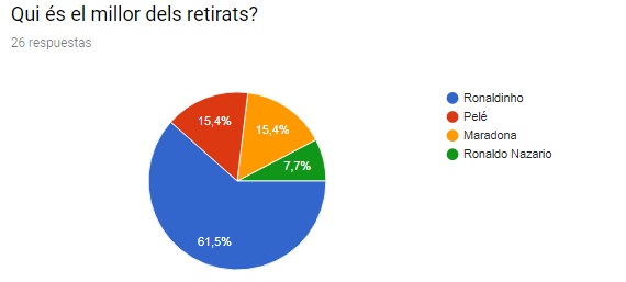 Vam anar a les classes de 4tB, 4tC, 3rB i 3rA i vam fer l’enquesta sobre els millors jugadors de futbol, en total van votar 26 persones. El millor ha sigut Ter Stegen com a porter, Umtiti com a defensa, Jordi Alba com a lateral, Pogba i Iniesta com a mig campistes, Messi com a millor extrem, Luis Suarez com a millor davanter i Pep Guardiola com a millor entrenador. El millor dels retirats ha estat Ronaldinho.