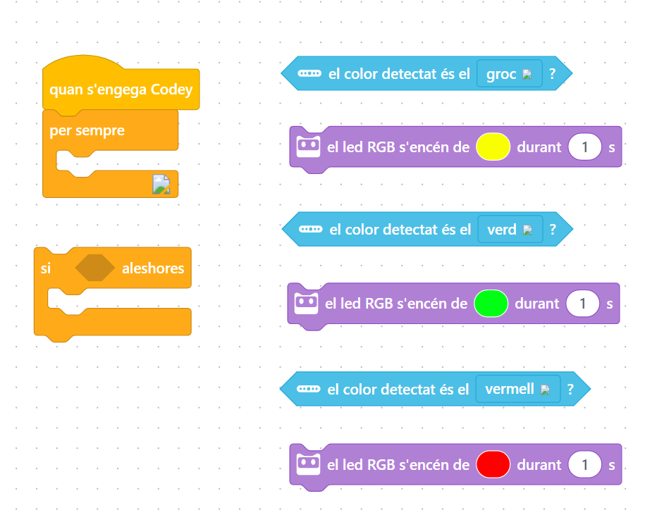 Fes que el robot Codey Rocky mostri el color que detecti a les targetes amb el sensor d’infrarojos al panell frontal.