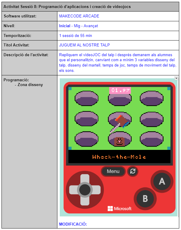 MakeCode Arcade és una plataforma de programació visual, suportada per Microsoft, que facilita el disseny de videojocs 2D de plataformes tipus arcade retro. Els jocs creats es poden gaudir en l’emulador que proporciona la pròpia eina o bé descarregar-los i jugar-los en dispositius portàtils.