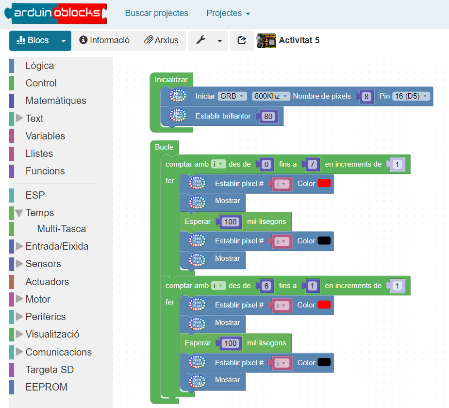 - Funcionament de la tira de Neopíxels