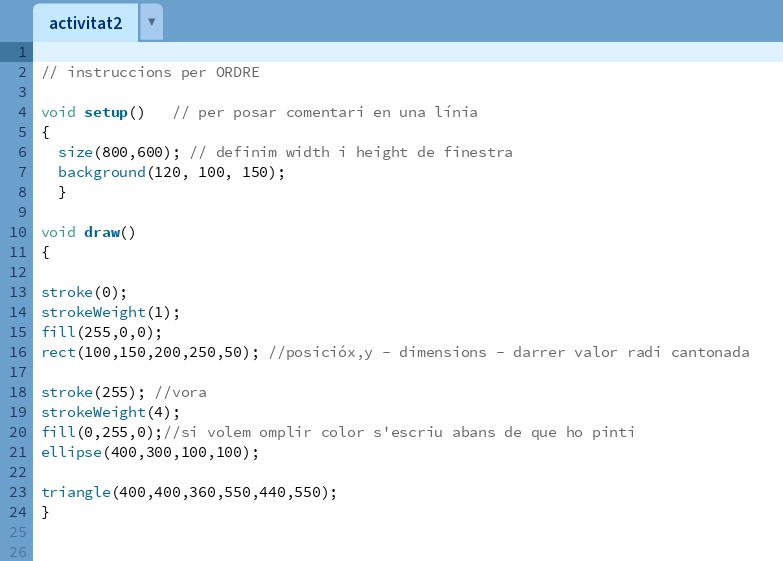 line(),rect(),ellipse(), entre altres, que dibuixen formes geomètriques. - Funció