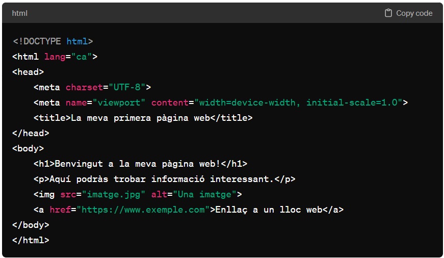 Per exemple, aquí tens un exemple senzill d’un document HTML: