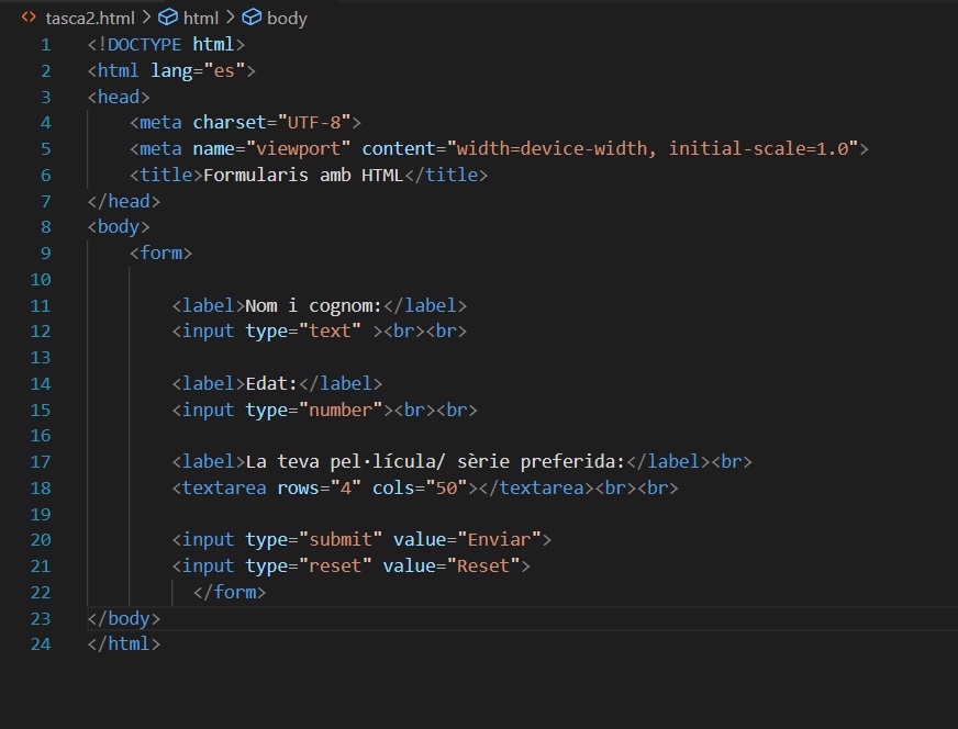 ● crea un títol del document amb el nom “Formularis amb HTML”