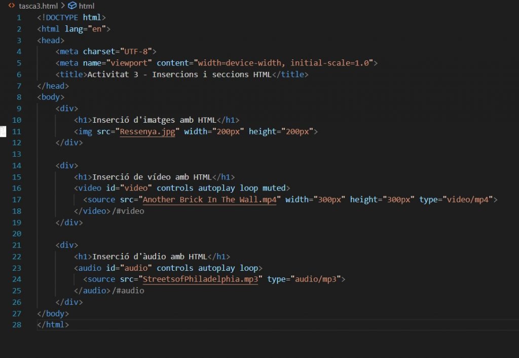 ➢ ha d’incloure el títol “Inserció d’àudio amb HTML”