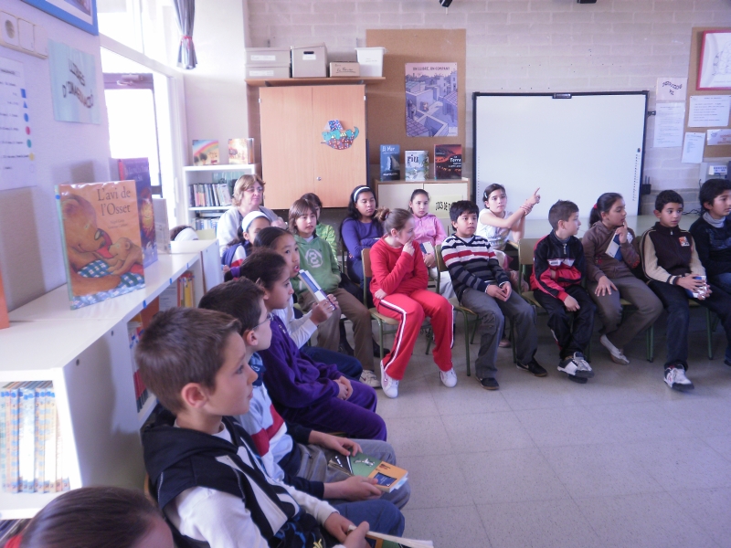 Mª Àngels Bogunyà, escriptora i autora del llibre “Un gos gairebè ferotge”, ens ha visitat aquest matí per parlar-nos del seu llibre, de tota la seva obra i de la seva vida com escriptora de contes per a nens i nenes. Ens va explicar que s’inspira en les històries que li explicava la seva àvia quan ella era petita.