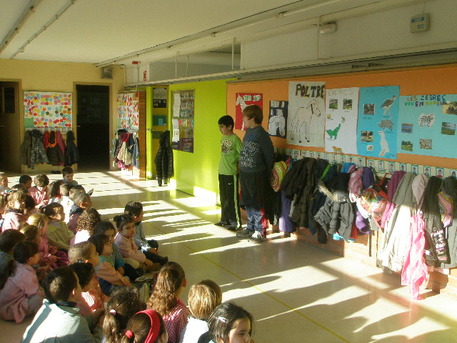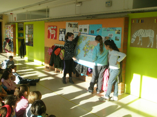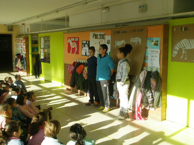 Els nens i nenes de 4t hem treballat les zebres a les classes de medi. Utilitzem molt el treball en petit grup i ens agrada moltíssim. Una vegada hem acabat el projecte, hem anat a fer una exposició del nostre treball als alumnes d’educació infantil.