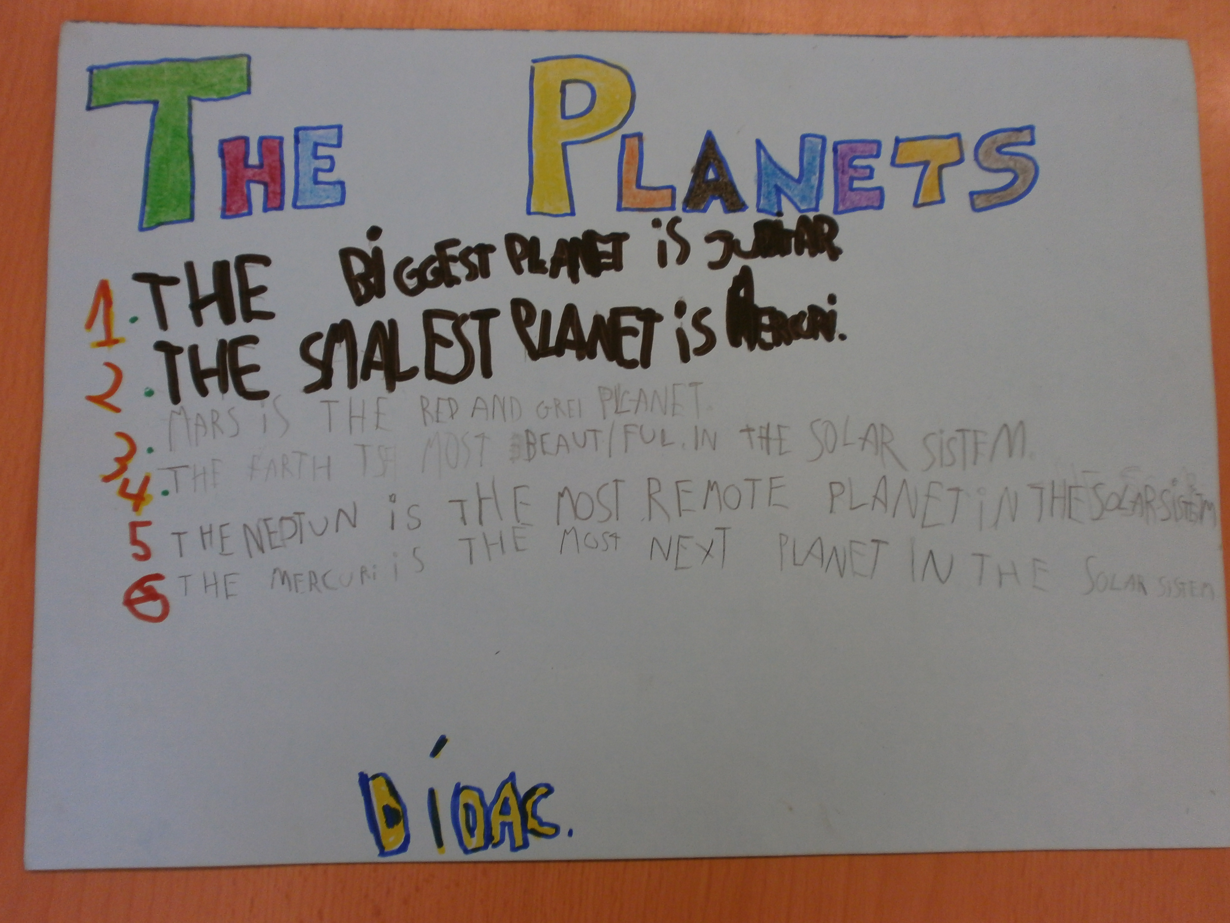 He wrote some interesting facts in English about some of the planets in the Solar System