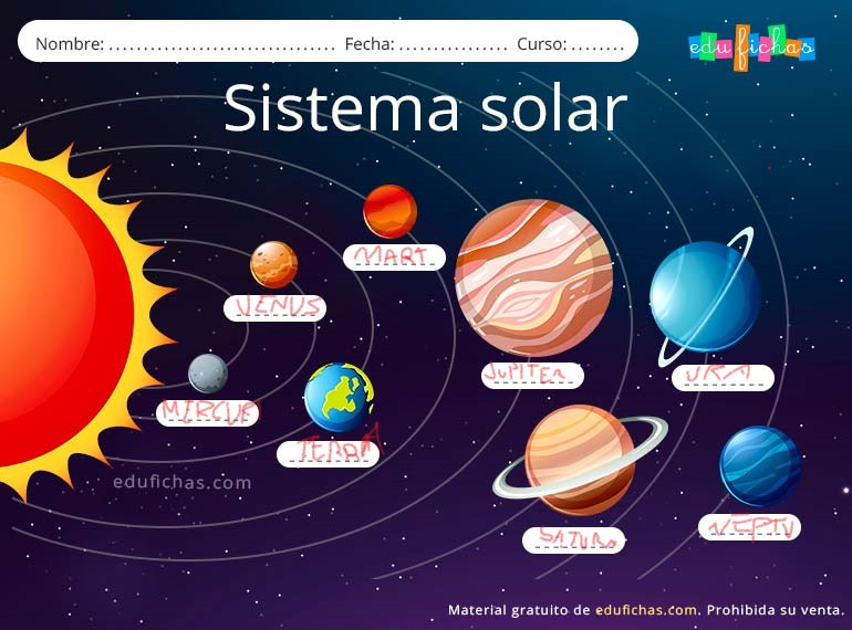 Fem una fitxa en grup i escrivim a la nostra PDI el noms dels planetes del sistema solar