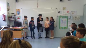 L’alumnat de 5è va treballar un recull de poemes de diferents autors per llegir-los en veu alta i la Rosa Vila els anava felicitant, alhora d’aconsellar-los en aspectes que podien millorar.