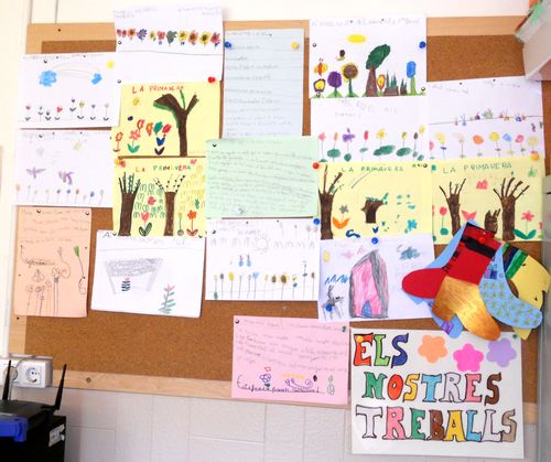 L’alumnat de Cicle Mitjà i la seva professora Anna, us volen mostrar els treballs que han fet sobre la primavera i que els han penjat al taulell de l’aula.