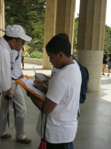 On June 14, a hot but cloudy day, 39 brave students from classes 5 and 6 at Escola Sagarra walked the streets to Park Güell. Their mission: to practise their English with interviews they have prepared in class.