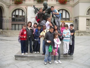 Al final ens vam fer aquesta foto de grup a la plaça Dr. Robert, davant de l’Ajuntament, amb l’estàtua del Sr. Joan Sallarès i Pla, que dóna nom a la nostra escola.