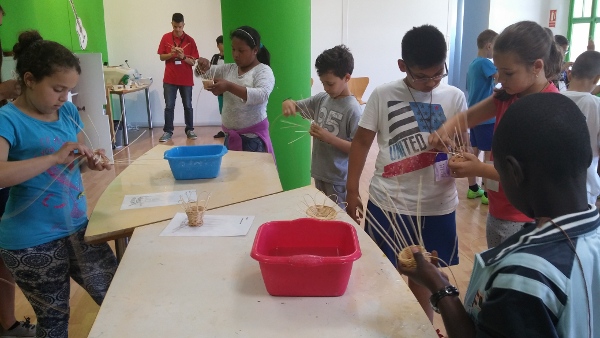 També vem fer un taller de fer un cistell miniatura amb un material que es diu Medul·la de rotang.
