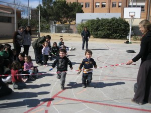Quan ja sabíem què era un testimoni (aquest pal que ens hem d’anar passant a la cursa) vam practicar els relleus a les sessions de psicomotricitat.