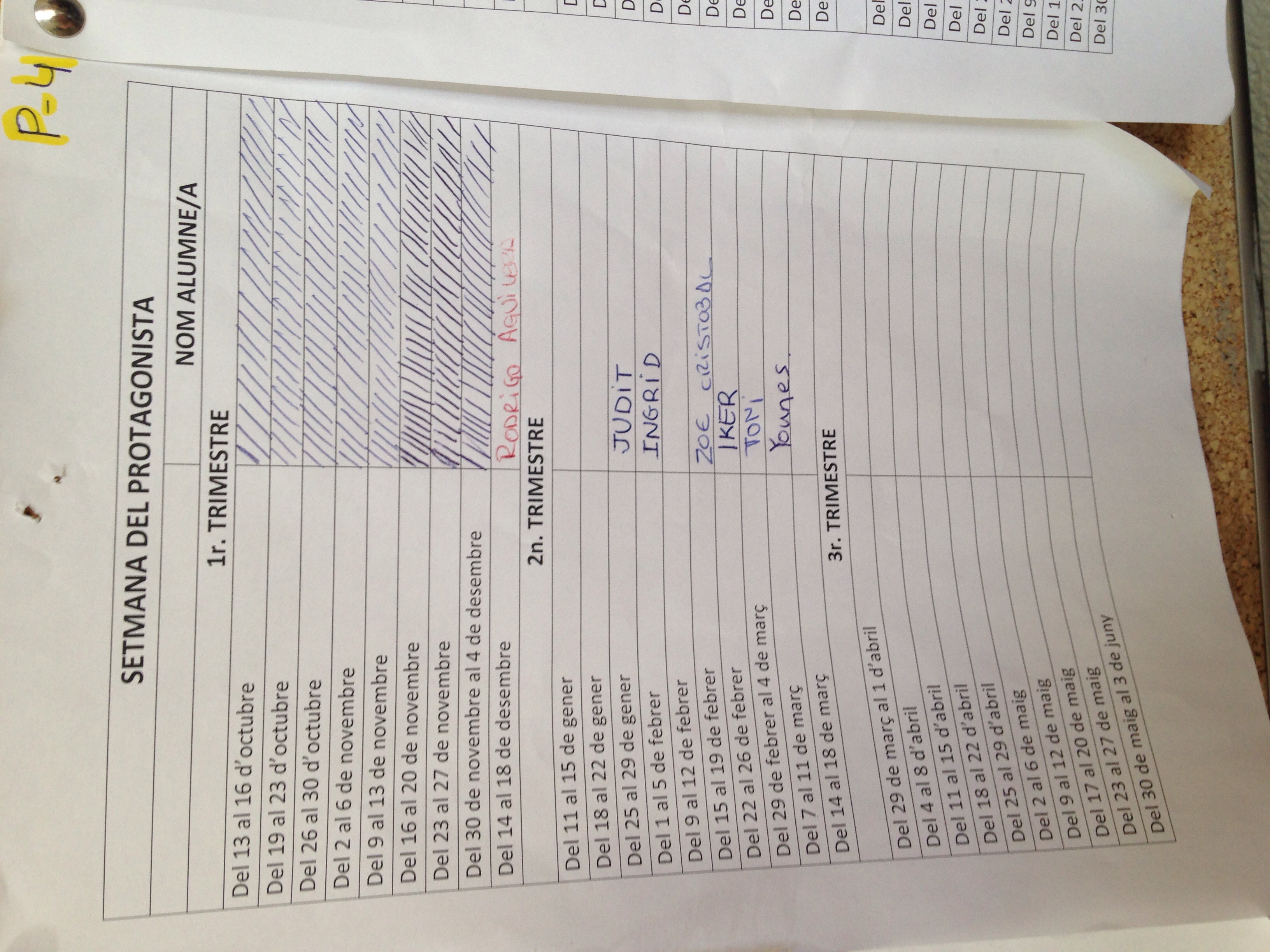 Us recordo que si voleu participar en l’activitat en la qual el vostre fill es converteix en protagonista durant una setmana a l’aula i té el privilegi d’emportar-se la maleta viatgera, la mascota i gaudir de la visita a l’aula de la seva familia, us heu d’apuntar a la llista que es troba al panell del gimnàs.