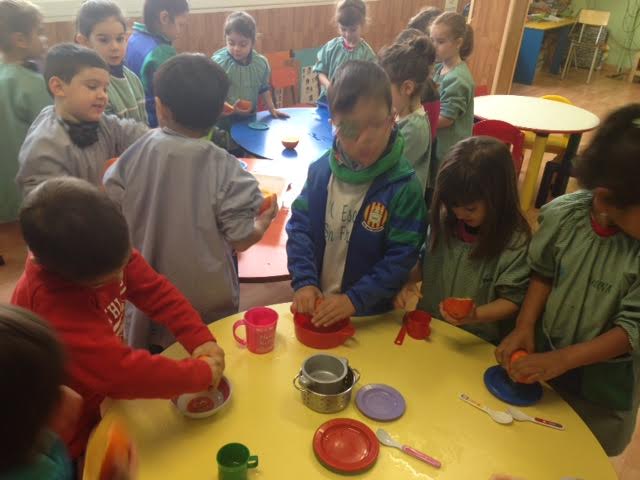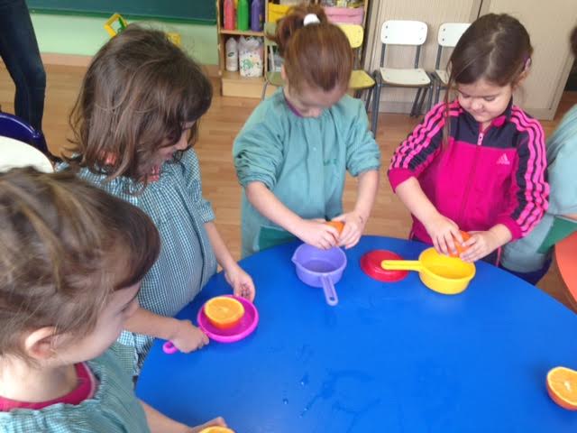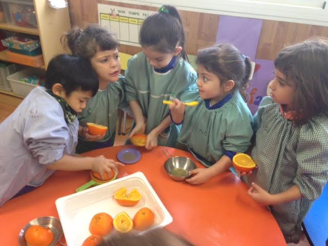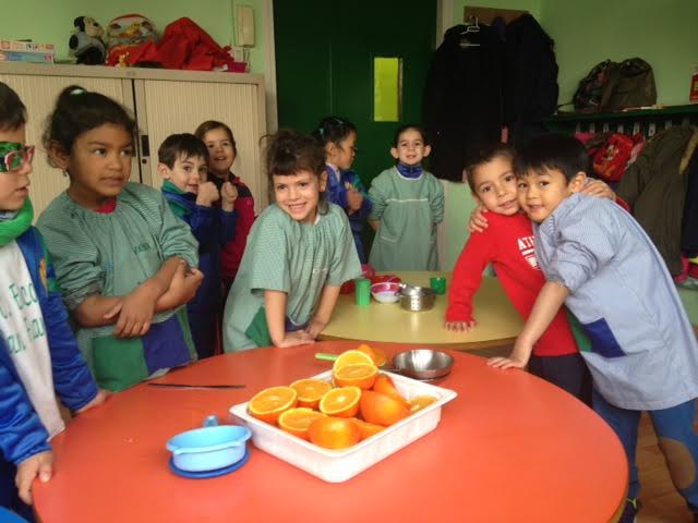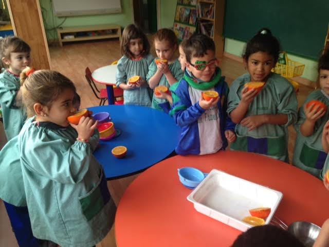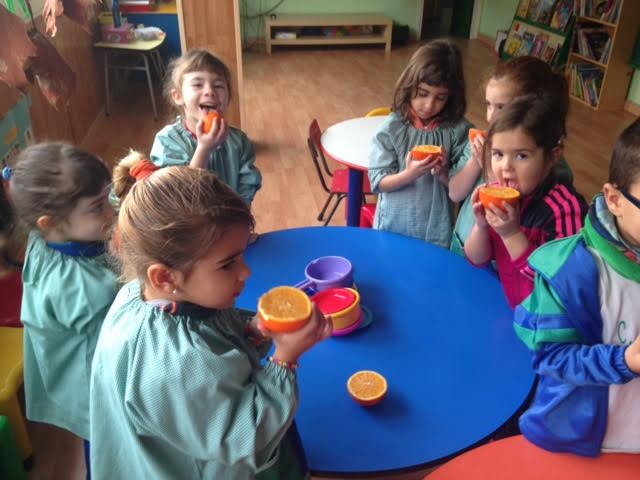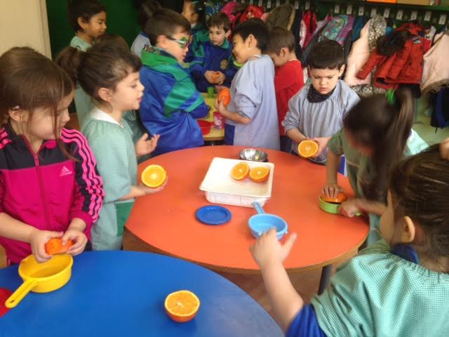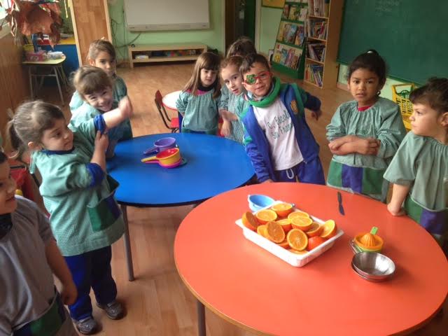 Aquest matí els nens han realitzat una activitat d’experimentació amb taronges. Primer de tot hem fet preguntes sobre aquesta fruita, i ells posteriorment han pogut verificar si les seves hipòtesis/ respostes es complien o no. A través del joc els nens han pogut tastar el gust de la taronja i veure si és dolç, salat, amarg, etc. Així com també han pogut tocar i fer el seu propi suc amb els estris que tenien.
