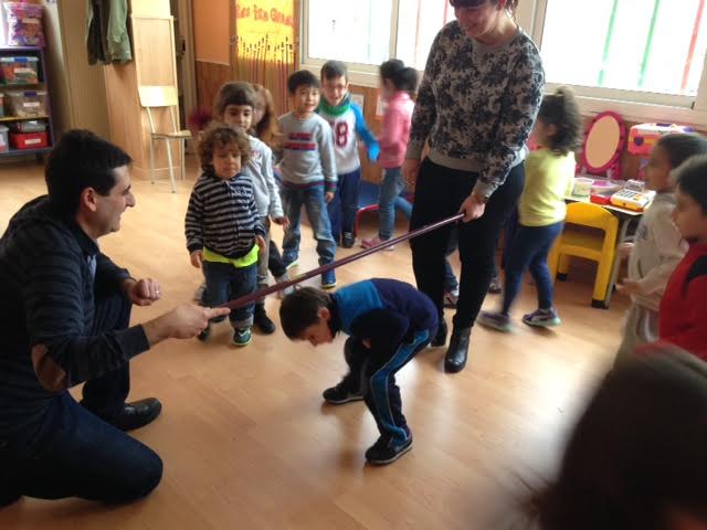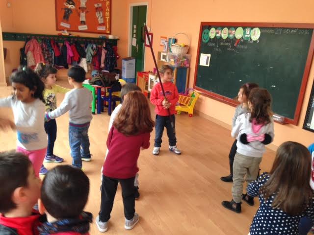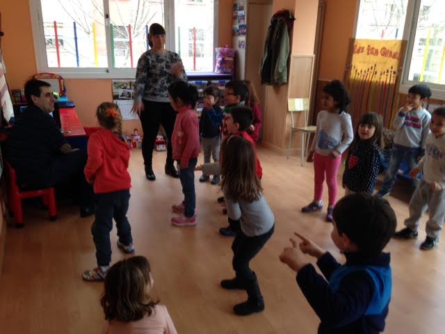 Divendres passat van venir els pares de la Judit a la classe. Van preparar diferents cançons per ballar i jugar. Van començar amb el limbo, a continuació el joc de les estàtues, continuant així amb el ball de l’escombra i finalitzant amb el Buggy buggy i després ball lliure. Els petits s’ho van passar d’allò més bé amb la visita.