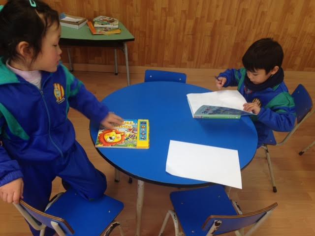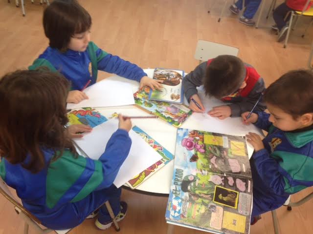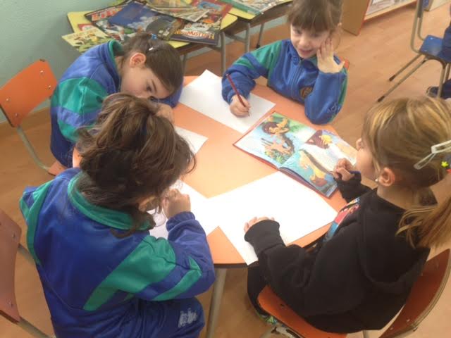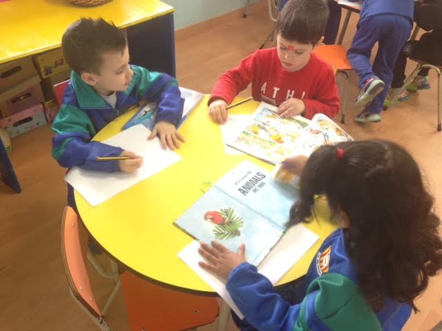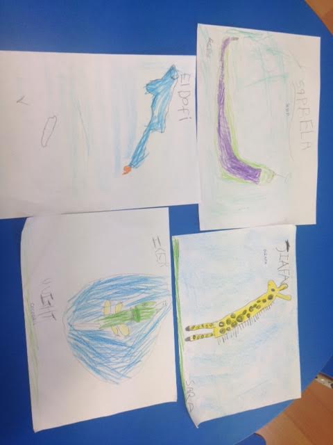 Amb ajuda dels contes que ells mateixos han portat sobre el projecte, ahir van fer un dibuix lliure de l’animal que volien, i a més van escriure el nom sense ajuda.