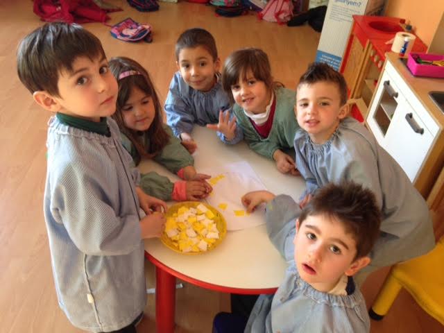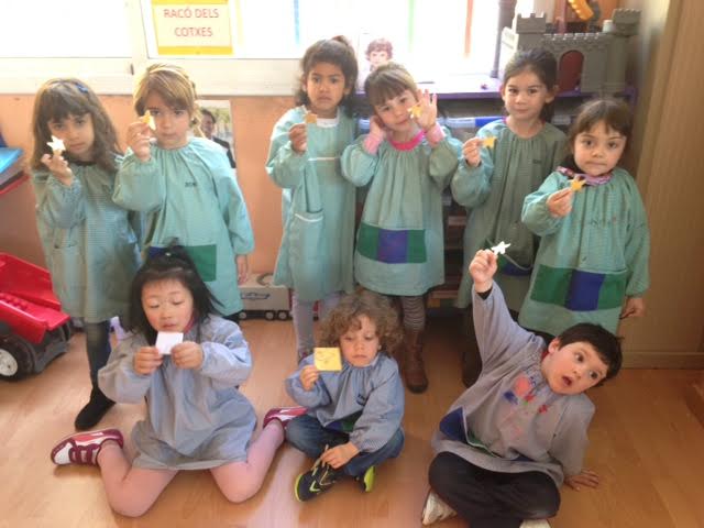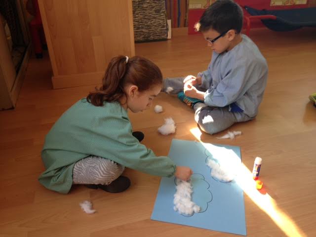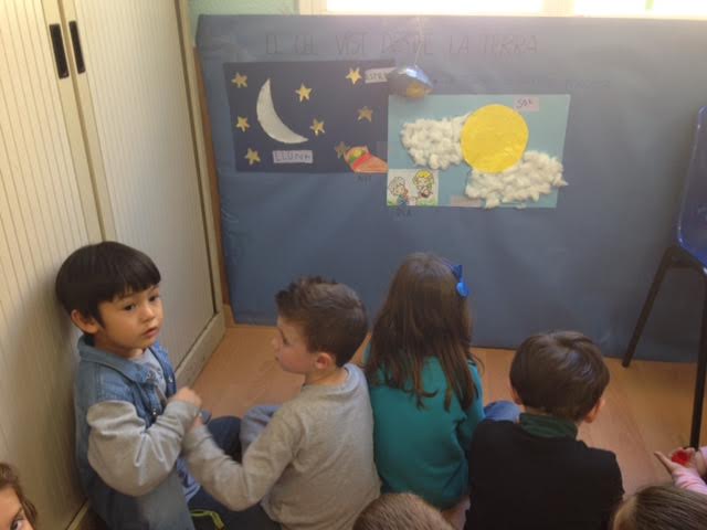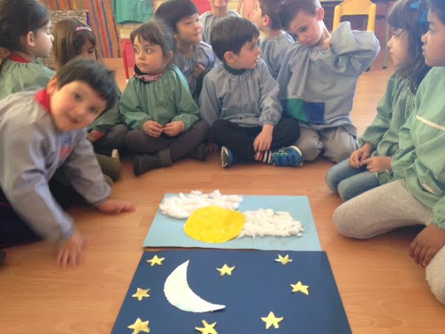 Què veiem al Cel des de la Terra? Aquesta ha estat la qüestió plantejada i treballada durant el dia d’avui. Entre tots hem participat en la construcció d’uns murals d’allò que veiem a simple vista des de la Terra; el Sol, els núvols, la lluna i les estrelles i en quins moments del dia es pot veure.