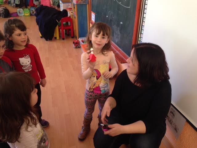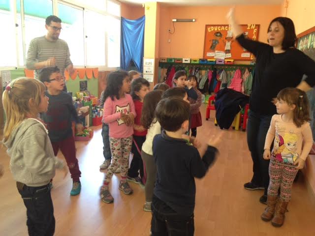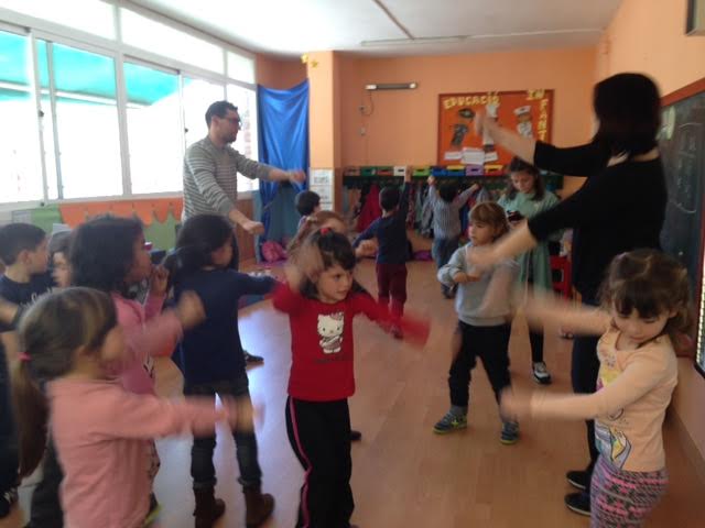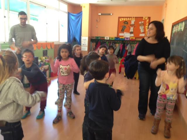 Els pares de l’Elena han vingut a l’aula i ens han preparat un joc relacionat amb la música. A partir d’una joguina, els nens havien de relacionar-ho amb cançons conegudes que posteriorment han ballat.