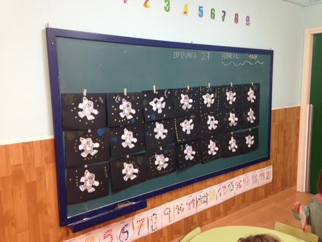 Seguim amb el projecte del Cel i l’Espai. Aquestes darreres sessions hem parlat del primer gos que va orbitar la Terra, del primer home que va viatjar a la Lluna, etc. I ahir es van imaginar com seria la vida si fossin astronautes i van finalitzar amb una manualitat plàstica.