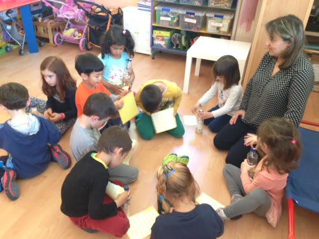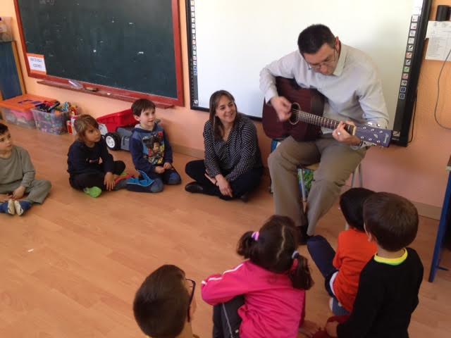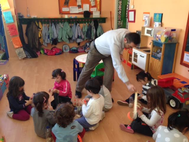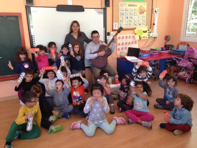El Pau és el protagonista de la setmana i ahir els seus pares van venir a l’aula amb dues activitats preparades. La primera era veure com el pare del Pau toca la guitarra, tots es van quedar amb la boca oberta i la segona part de l’activitat consitia en preparar unes maraques i fer un joc amb elles.