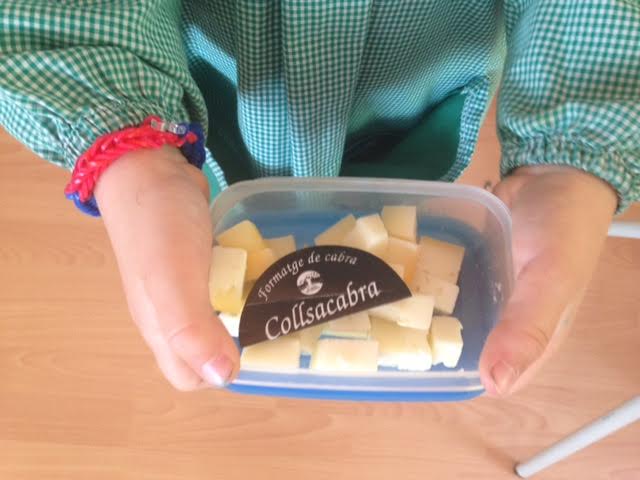 Avui la Judit ens ha volgut donar per tastar una mica de formatge de cabra, ja que és l’animal que ella ha treballat a casa.