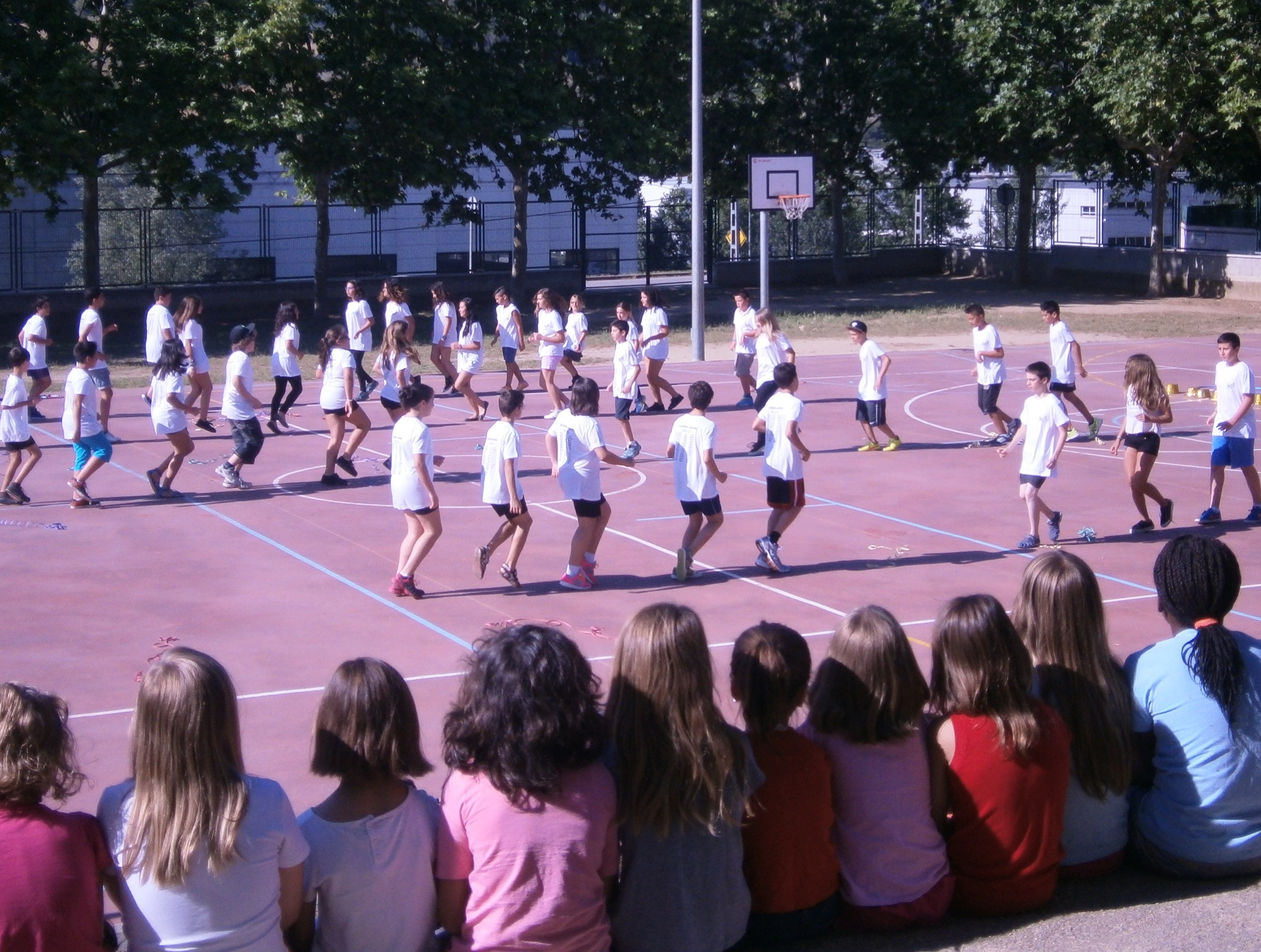 En total uns 12 grups, amb alumnes barrejats de 4t, 5è i 6è que anàvem passant per les diferents estacions de jocs treballant en equip.