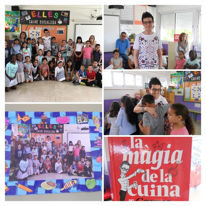 El dilluns 28 de de maig vàrem tenir una visita que esperàvem amb molta il·lusió, la Carme Ruscalleda va venir a la nostra escola, la vam poder conèixer i explicar-li totes aquelles descobertes que hem anat fent al llarg del curs entorn al projecte. La Carme també ens va explicar moltes coses interessants relacionades amb la seva vida, l’alimentació i el món de la restauració. Ens va regalar una roda dels aliments il·lustrada per ella mateixa. Quantes emocions !