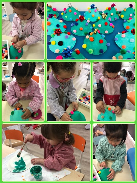 A més, hem fet l’avet amb un plat de cartró pintant-lo de color verd, decorat amb boletes de colors i amb l’estrella a dalt de tot. Quina il·lusió!!!