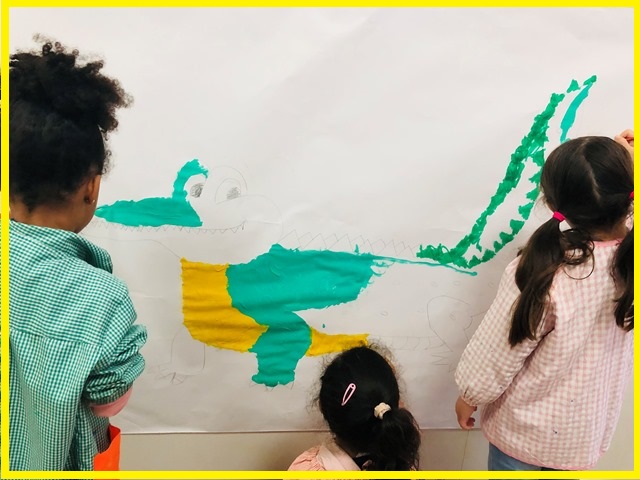 Ara estem pintant un cocodril i farem un mural amb paraules relacionades amb tot allò que hem après i finalment farem un vídeo per ensenyar-li a les altres classes i a les famílies, per a que coneguin i sàpiguen tot el que nosaltres sabem sobre els cocodrils… aviat us ensenyarem el resultat, estigueu moooolt atents/es!!!