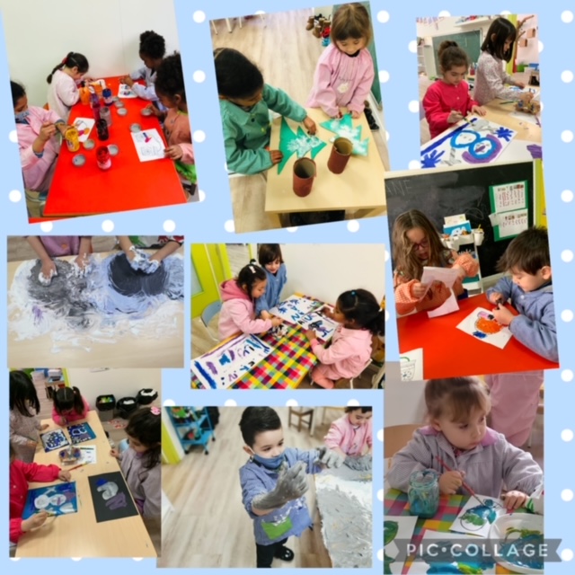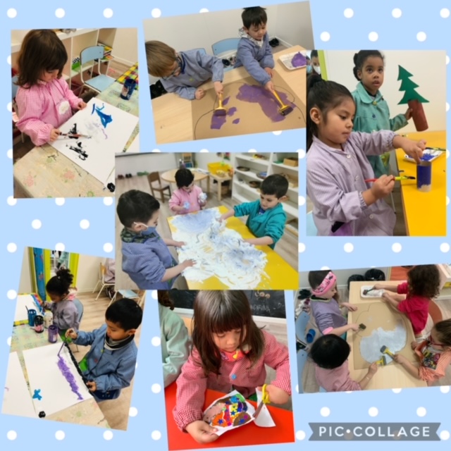També, hem realitzat propostes com pintura i espuma per treballar l’hivern amb els seus colors i sensacions fredes…