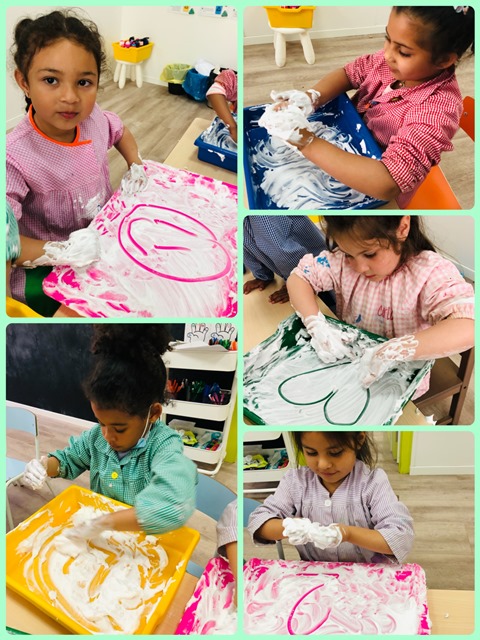 Fa uns dies a lliure circulació, la classe dels cocodrils vam experimentar amb un material que feia temps que no tocàvem… l’escuma d’afaitar!
